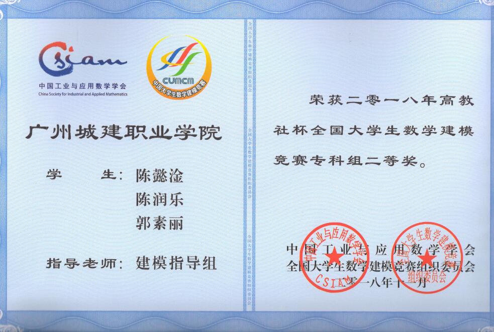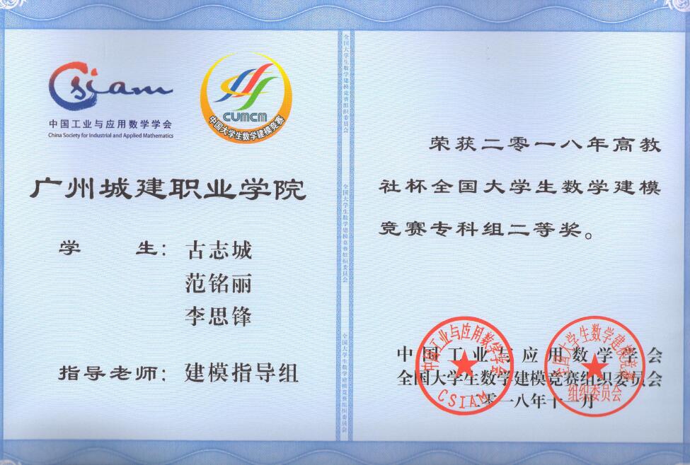 日前,從全國大學(xué)生數(shù)學(xué)建模競賽組委會傳來喜訊,我校在2018年全國大學(xué)生數(shù)學(xué)建模競賽中榮獲全國二等獎2項、省級一等獎2項、省級二等獎6項、省級三等獎2項,在全省高職院校中總成績名列前茅。