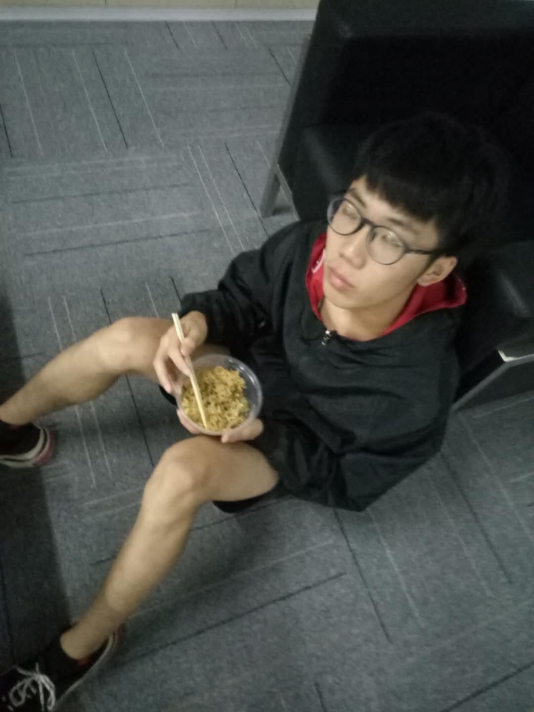 太疲憊了,“湊合”成了許多同學(xué)的口頭禪。吃飯“湊合”、睡覺(jué)“湊合”,這張照片真實(shí)地記錄下這一切:一個(gè)身穿黑色外套的男生雙手低捧著泡面碗,坐靠在機(jī)房桌子的一角,頭微往后仰,黑色鏡框下是他緊閉的雙眼,他安靜地睡著了……盡管同學(xué)們感到身心疲憊、枯燥困乏,但他們決不言棄,因?yàn)樗麄兩钚牛撼晒膩?lái)都不會(huì)偶遇,是汗水、淚水的結(jié)晶,愛(ài)拼才會(huì)贏!