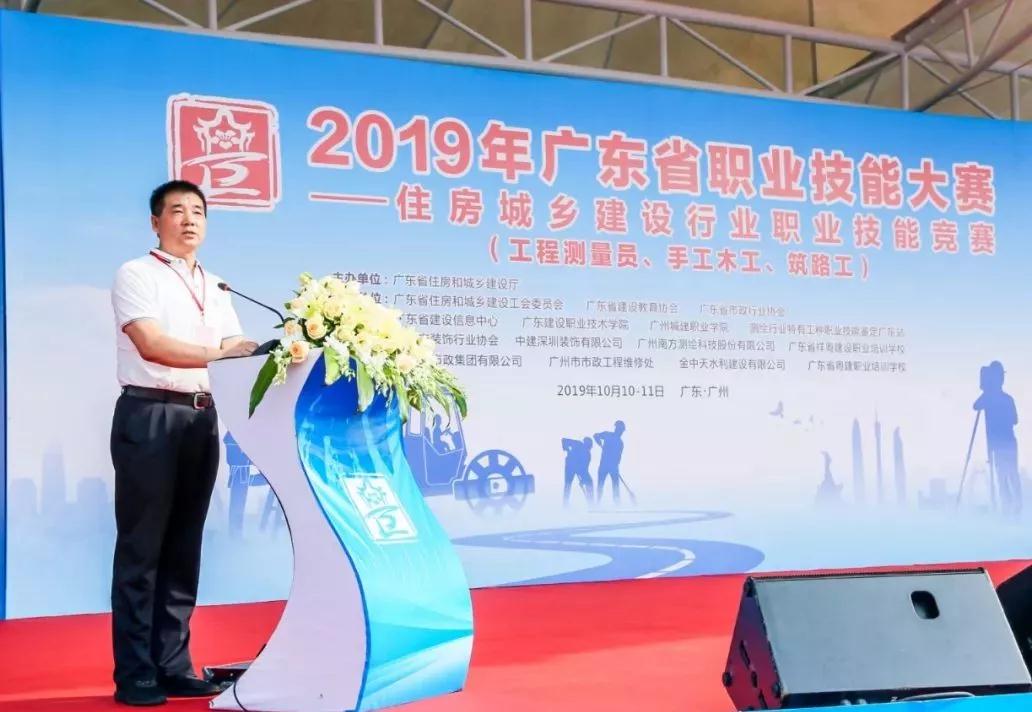 10月10日上午,由廣東省住房和城鄉(xiāng)建設(shè)廳主辦,廣東省住房和城鄉(xiāng)建設(shè)工會委員會、廣東省建設(shè)教育協(xié)會、廣東省市政行業(yè)協(xié)會承辦的“2019年廣東省職業(yè)技能大賽——住房城鄉(xiāng)建設(shè)行業(yè)工程測量員、手工木工競賽”在我校隆重舉行。開賽儀式由省住房和城鄉(xiāng)建設(shè)工會主席郭建華主持,省住房和城鄉(xiāng)建設(shè)廳副巡視員華宏敏出席并致辭,省建設(shè)教育協(xié)會會長陳澤攀、我校校長蔣新華、省部分地市住房和城鄉(xiāng)建設(shè)主管部門負(fù)責(zé)同志及參賽選手出席了開賽儀式。