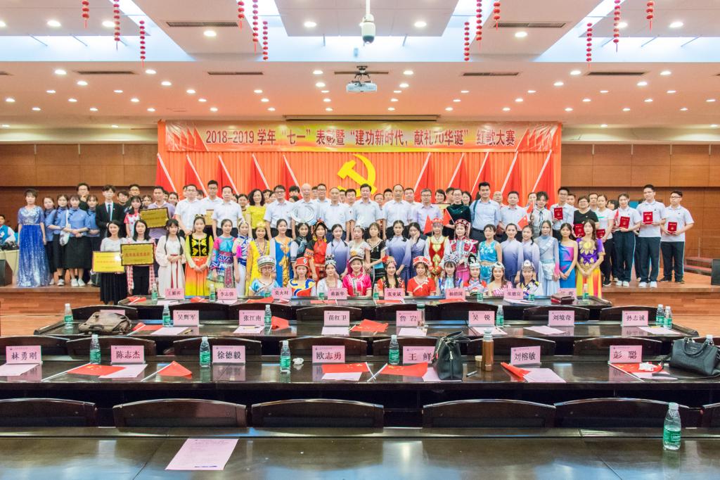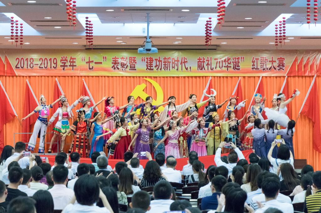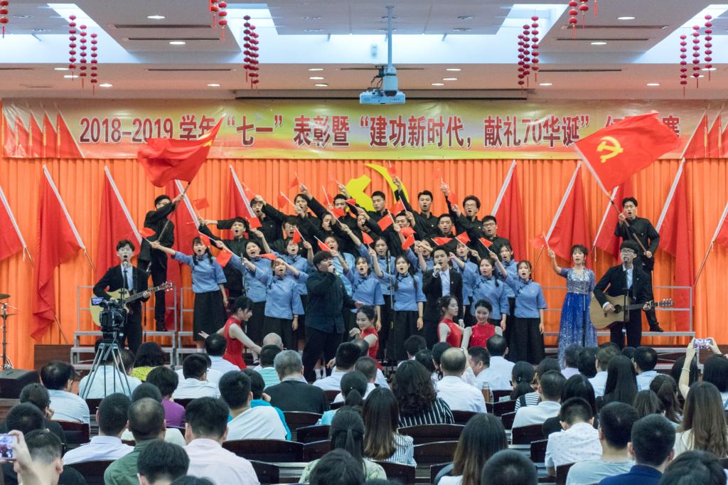 為慶祝中華人民共和國(guó)成立70周年和建黨98周年,總結(jié)成績(jī),表彰先進(jìn),樹(shù)立典范,6月27日晚,學(xué)校在人文藝術(shù)樓四樓報(bào)告廳隆重舉行2018-2019學(xué)年“七一”表彰暨“建功新時(shí)代,獻(xiàn)禮70華誕”紅歌大賽,用紅歌唱響新時(shí)代的主旋律!學(xué)校董事會(huì)執(zhí)行董事、校務(wù)管理委員會(huì)主任張亞斌,校長(zhǎng)蔣新華,黨委書(shū)記楊清國(guó),黨委副書(shū)記、副校長(zhǎng)張德宜,副校長(zhǎng)李志強(qiáng)、周暉、王媚莎,總會(huì)計(jì)師苗紅衛(wèi),校長(zhǎng)助理吳銳及全體師生黨員參加了大會(huì)。大會(huì)由黨委副書(shū)記魯巖主持。
