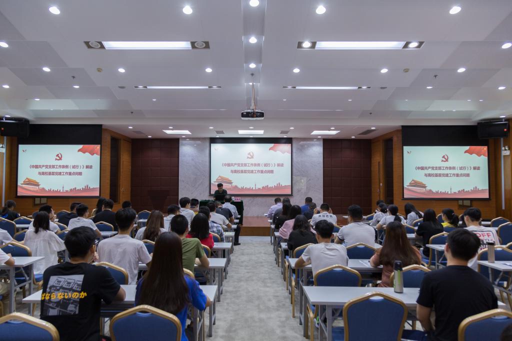 會議上,關(guān)春杰同志針對《中國共產(chǎn)黨支部工作條例(試行)》與高?;鶎狱h建工作存在重點問題從《條例》的制定背景和意義,《條例》的主要內(nèi)容,民辦高?;鶎狱h建存在的問題,以及基層黨建工作中的幾個重要問題作出了具體介紹與分析。