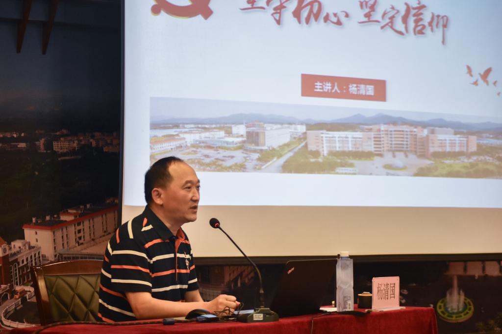 楊清國書記以“堅持初心,堅定信仰”為主題,從什么是信仰、信仰的作用、信仰的缺失與動搖、如何堅定共產(chǎn)主義信仰四個方面為同學(xué)們講授了第一堂課。他強調(diào)作為一名學(xué)生應(yīng)該堅守初心、堅定信仰,并從老演員牛犇的入黨事跡論證了信仰在同學(xué)們成長和發(fā)展中的重要性。楊清國書記指出,為人民服務(wù)是共產(chǎn)主義信仰的核心、共產(chǎn)主義信仰的遠大理想是共產(chǎn)主義社會,同學(xué)們要有崇高的信仰,因為信仰是抵制腐朽思想侵蝕的思想保證,是保持黨團結(jié)統(tǒng)一的思想基礎(chǔ)。