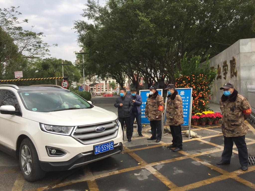 校長(zhǎng)助理吳銳在校門(mén)口檢查防疫工作