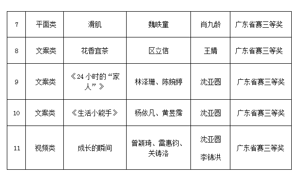 近日,2019年第十一屆全國(guó)大學(xué)生廣告藝術(shù)大賽全國(guó)總決賽獲獎(jiǎng)名單公布,我校人文學(xué)院師生獲得三等獎(jiǎng)1項(xiàng)、優(yōu)秀獎(jiǎng)1項(xiàng),成績(jī)?cè)谌⊥愒盒V忻星懊?。其中吳潔薇、王婧老師指?dǎo)的作品是學(xué)校在國(guó)賽中唯一獲等級(jí)獎(jiǎng)的項(xiàng)目,也是人文學(xué)院師生近年參加該項(xiàng)賽事以來所取得的最好成績(jī)。