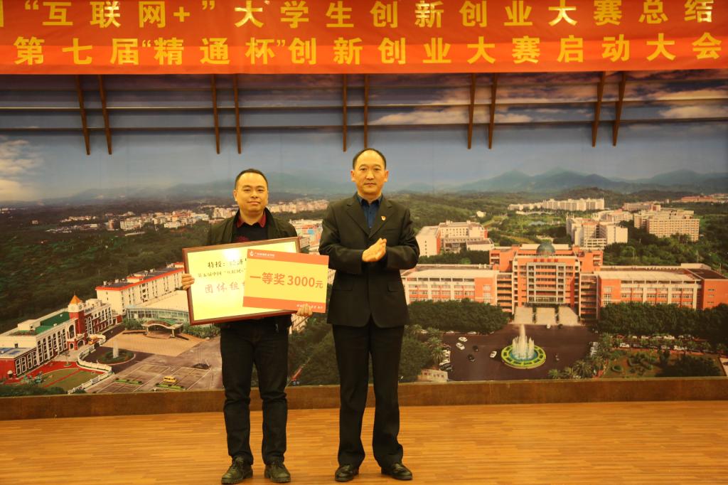 學(xué)校黨委書記楊清國在講話中指出,本次大會,既是對師生在今年“互聯(lián)網(wǎng)+”大賽上取得突破性成績的表彰和獎勵,更是吹響了向創(chuàng)新創(chuàng)業(yè)大賽進軍的新的號角。為了更好地做好第七屆“精通杯”創(chuàng)新創(chuàng)業(yè)大賽賽事準備工作,他提出三點希望,有關(guān)部門要激發(fā)活力,讓更多同學(xué)和老師參與其中;要精心組織,在頂層設(shè)計上下功夫;要賽學(xué)并舉,在人才培養(yǎng)上用力氣。