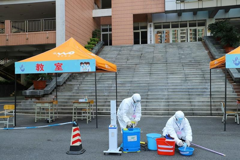 工作人員正在消毒