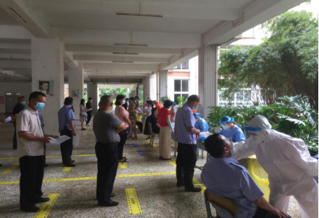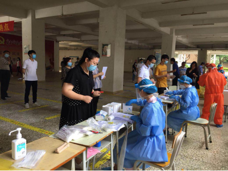兩次檢測(cè)均于上午8點(diǎn)30分在信工財(cái)經(jīng)樓一樓進(jìn)行。被檢測(cè)人員包括后勤、宿管、食堂、超市等外包服務(wù)單位的245名員工以及學(xué)校領(lǐng)導(dǎo)、各職能部門(mén)、二級(jí)學(xué)院的440余名教職工。檢測(cè)由南方醫(yī)科大學(xué)第五附屬醫(yī)院派出的醫(yī)務(wù)人員進(jìn)行。