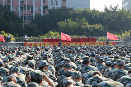 動(dòng)員大會(huì)在教官們動(dòng)作整齊、氣勢(shì)昂揚(yáng)的精彩表演中落下帷幕。2020級(jí)新生軍訓(xùn)就此拉開帷幕,6900余名新生身著綠軍裝,以挺拔的姿勢(shì)、飽滿的精神,迎接軍訓(xùn)的洗禮。