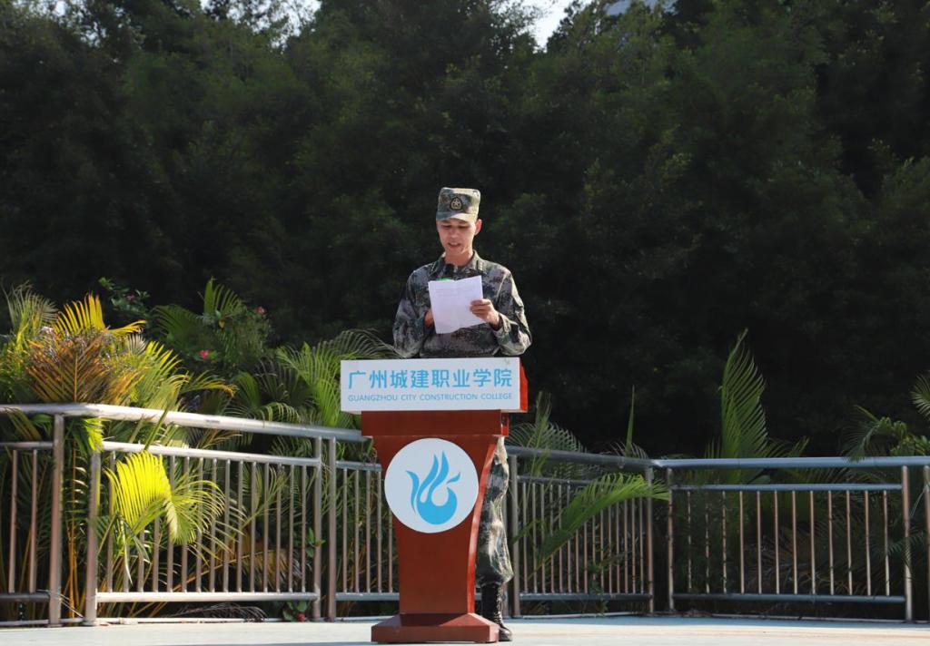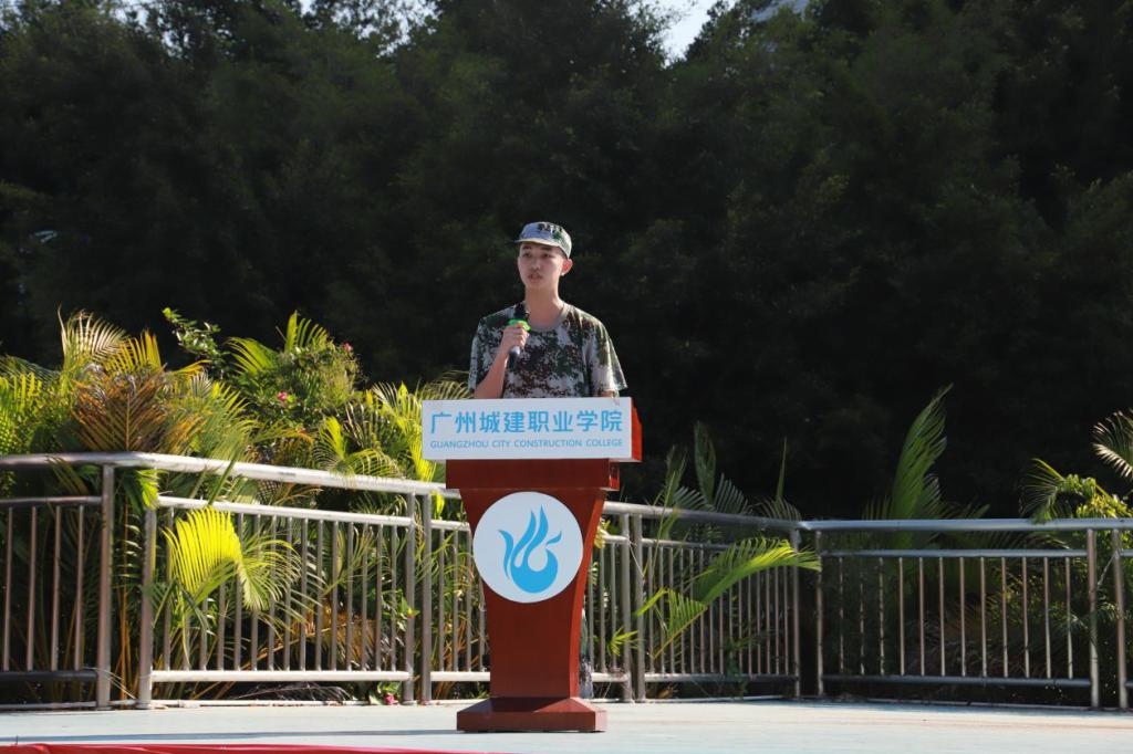 緊接著,來自外語外貿(mào)學(xué)院參訓(xùn)新生代表鄧敬賢同學(xué)發(fā)言。他代表全體參訓(xùn)同學(xué)作出莊重承諾:一是服從命令,聽從指揮;二是規(guī)范動(dòng)作,認(rèn)真訓(xùn)練;三是戰(zhàn)勝困難,突破自我。一定不辱使命,圓滿完成各項(xiàng)軍訓(xùn)任務(wù)。