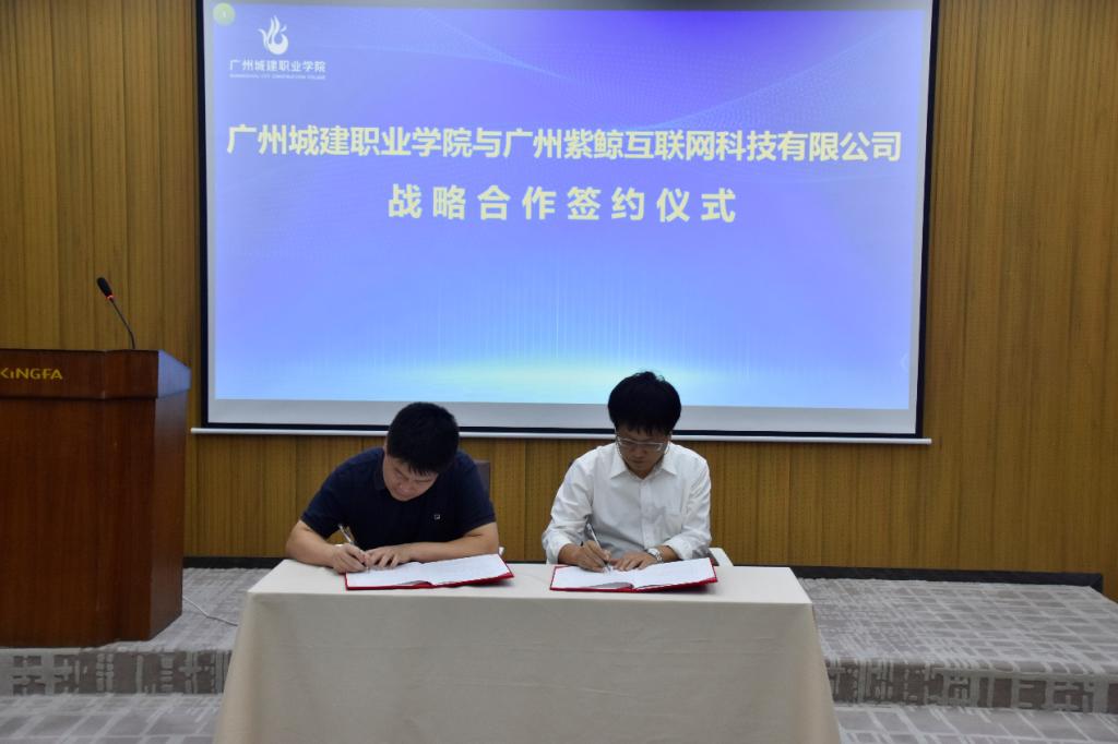 本次儀式共有9家企業(yè)接受了學(xué)校知識(shí)產(chǎn)權(quán)轉(zhuǎn)讓,受讓公司是我校自主孵化的企業(yè),公司創(chuàng)始人均是我校培養(yǎng)的學(xué)生。魯五一代表學(xué)校與廣州紫鯨互聯(lián)網(wǎng)科技有限公司總經(jīng)理金鑫簽訂了校企合作協(xié)議。