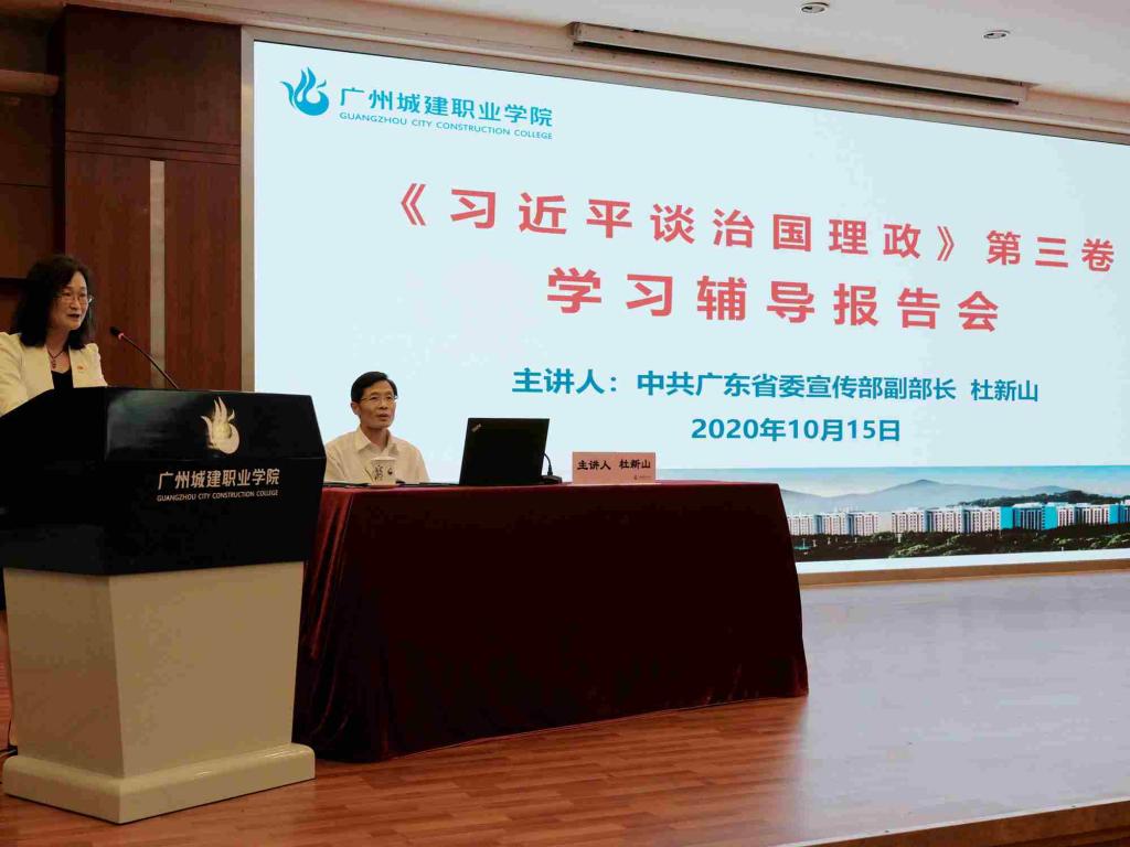 為深入學(xué)習(xí)理解《習(xí)近平談治國理政》第三卷的豐富內(nèi)涵、核心要義和實踐要求,推動黨的創(chuàng)新理論在學(xué)校落地生根,10月15日下午,學(xué)校舉行黨委理論學(xué)習(xí)中心組(擴大)會議暨中層管理干部、教工和學(xué)生黨員學(xué)習(xí)《習(xí)近平談治國理政》第三卷專題培訓(xùn)會,邀請省委宣講團成員、省委宣傳部副部長杜新山作學(xué)習(xí)輔導(dǎo)報告。學(xué)校黨委書記黃學(xué)茭主持報告會。