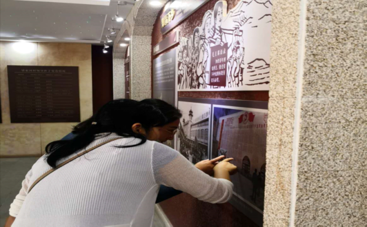 在梁家河村史館中仔細(xì)查看知青名冊(cè)