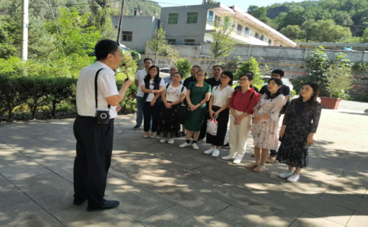 在楊家?guī)X革命舊址中共中央辦公廳舊址旁聆聽(tīng)何振苓老師現(xiàn)場(chǎng)教學(xué)