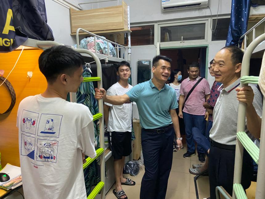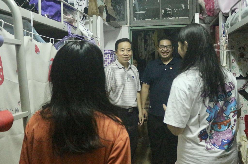 返校后的學(xué)生晚上住得怎么樣?還有什么困難?9月13日晚上7點半,校長蔣新華、黨委書記黃學(xué)茭等校領(lǐng)導(dǎo)分作七路,在各二級學(xué)院負(fù)責(zé)人的陪同下,深入學(xué)生宿舍,看望返校學(xué)生。