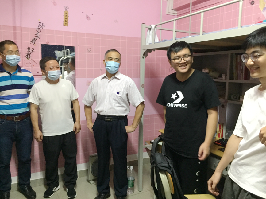 蔣新華一行接連走訪了5樓、3樓等多間宿舍。他仔細(xì)察看同學(xué)們的住宿條件和生活環(huán)境,詢問同學(xué)們的家庭情況、學(xué)習(xí)經(jīng)歷、飲食起居,關(guān)心他們?nèi)胱嬍液蟮母惺芎兔鎸磳㈤_始的緊張學(xué)習(xí)生活的心情的,交流既簡短又愉快。他鼓勵同學(xué)們:經(jīng)此一疫,大家都成長了。重新回到校園,一定要珍惜來之不易的生活。同一寢室的同學(xué)要互相幫助,相互包容,共同成長進(jìn)步。