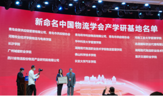 會(huì)上,中國(guó)物流與采購(gòu)聯(lián)合會(huì)學(xué)會(huì)工作部主任、中物聯(lián)物流園區(qū)專委會(huì)秘書長(zhǎng)黃萍為我校授牌。