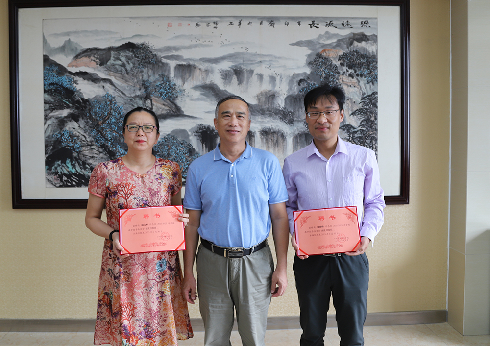 蔣新華為副主任委員鄢維峰、闞文婷頒發(fā)聘書,隨后3人為新一屆教指委委員頒發(fā)聘書。
