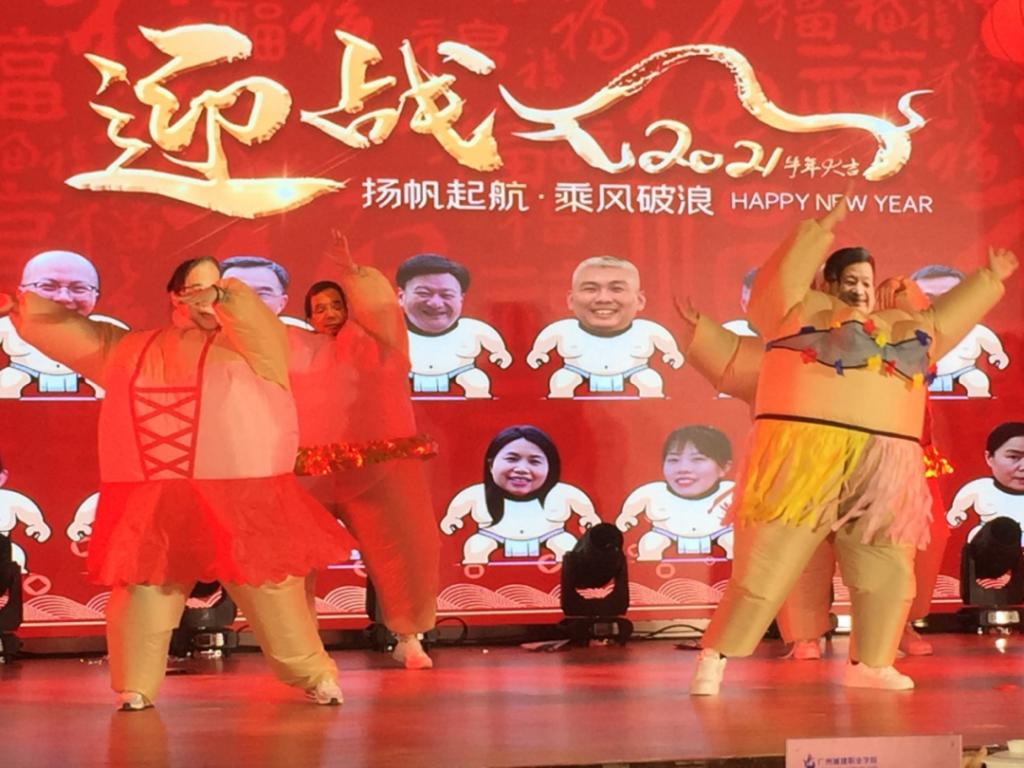 聯(lián)歡會在人文藝術樓四樓報告廳舉行。校長蔣新華、黨委書記黃學茭,廣州城建技工學校校長葉忠,我校首任校長張富良、第二任校長劉國生等公司、學校領導與全體教職員工歡聚一堂,回憶不平凡的2020,迎接2021新春。