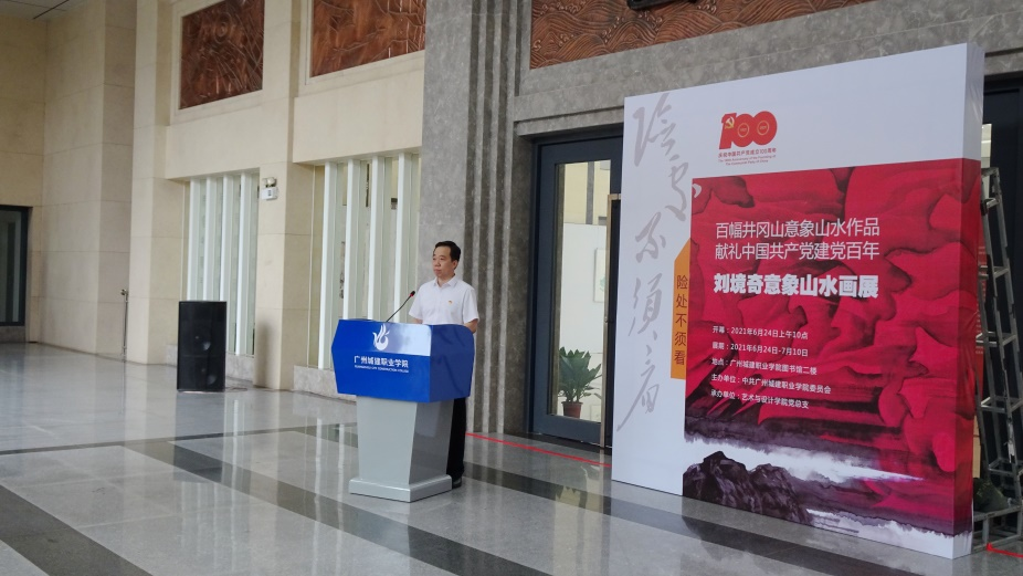 6月24日,《險處不須看——劉境奇意象山水畫展》在我校開幕。省委教育工委黨史學習教育第二巡回指導組組長、華南農業(yè)大學黨委常委、副校長蔣育燕,學校董事會執(zhí)行董事、校管會主任張亞斌,校長蔣新華,黨委書記黃學茭等校領導和部分師生參加開幕式。