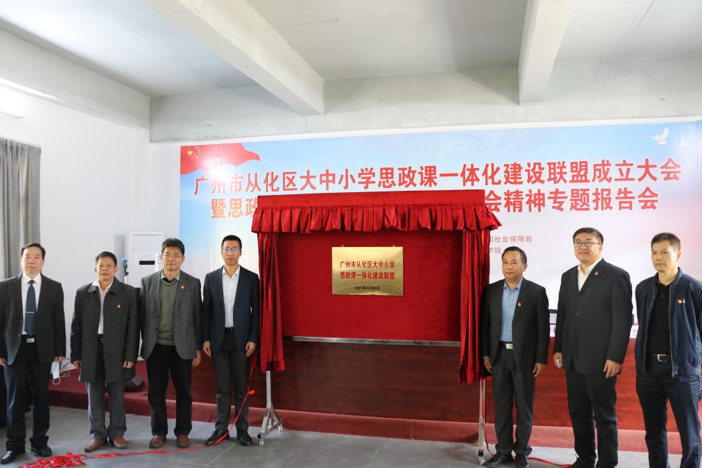 廣東省教育廳思政與宣傳處、廣州市教育局以及從化區(qū)委宣傳部、教育局、人力資源和社會保障局與理事長單位領(lǐng)導(dǎo)共同為聯(lián)盟成立揭牌。