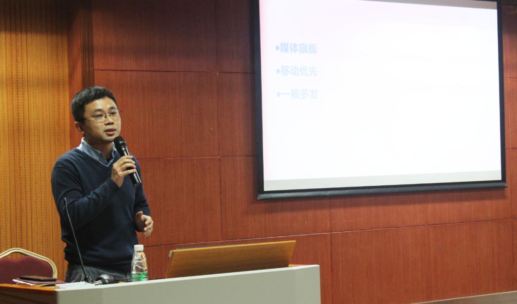 在一個半小時的時間里,他結(jié)合自己工作時的所見所聞與采訪體會,既有廣度,又有深度地從“媒體轉(zhuǎn)型”、“新聞的特點”、“常見的新聞樣態(tài)”、“什么是好的報道”等方面入手,生動形象地講授了從事新聞工作要注意的事項、如何從平常之中挖掘新聞、如何寫出好的報道等老師和同學(xué)們感興趣的話題。