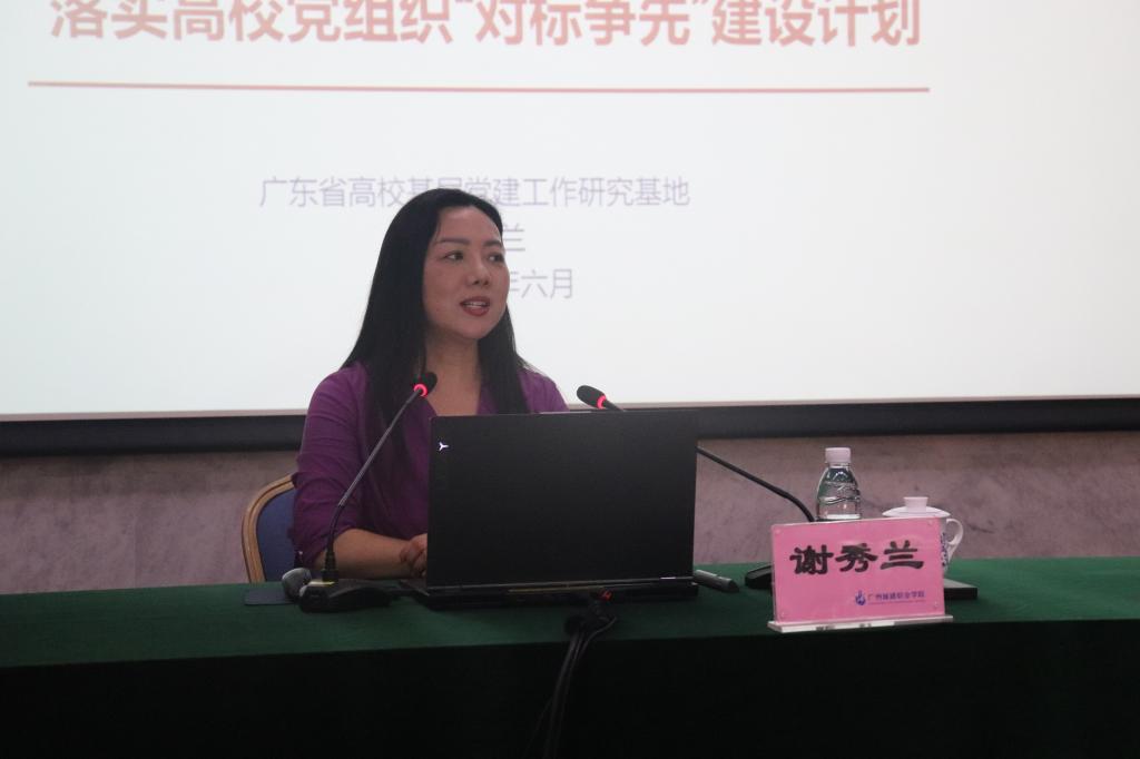 謝秀蘭以《高度重視,用心用力——落實(shí)高校黨組織“對(duì)標(biāo)爭(zhēng)先”建設(shè)計(jì)劃》為題,從新時(shí)代高校黨建示范創(chuàng)建和質(zhì)量創(chuàng)優(yōu)工作簡(jiǎn)介、廣東省“雙創(chuàng)”工作開(kāi)展情況、申報(bào)“雙創(chuàng)”工作建議以及未能入選“雙創(chuàng)”工作原因分析四個(gè)方面,對(duì)高校黨建“雙創(chuàng)”工作做了全面系統(tǒng)深入細(xì)致的講解,既有理論性、針對(duì)性,又有實(shí)踐指導(dǎo)意義。