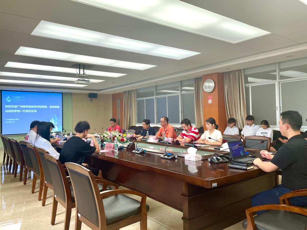 7月1日下午,廣州商學(xué)院體育學(xué)院院長李毅鈞、副院長沈翔,中山大學(xué)跆拳道奧運(yùn)冠軍羅微等一行5人來到我校交流調(diào)研,交流座談會在行政樓501會議室舉行。學(xué)校校長助理孔練光、體育健康學(xué)院院長李建軍、辦公室主任易木壽以及學(xué)院部分師生出席座談會。