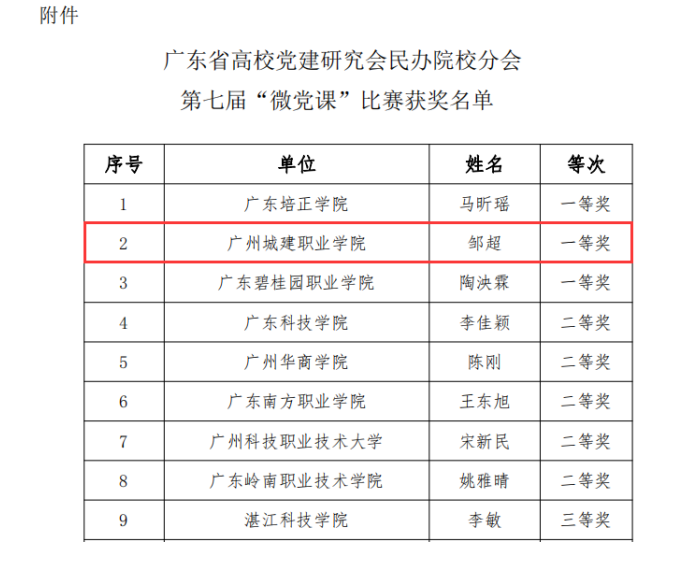近日,廣東省高等學校黨的建設研究會民辦學校分會公布了第七屆“微黨課”比賽獲獎名單,我校建筑工程學院鄒超老師以總分第二名的成績摘獲一等獎,這也是我校在全省民辦院校“微黨課”比賽中第三次獲得一等獎。