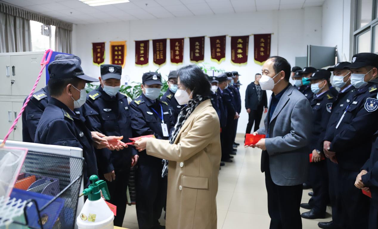 校領(lǐng)導(dǎo)深入學(xué)校辦公室、后勤處、保衛(wèi)處等地,了解寒假期間校園安全及服務(wù)保障等情況,對大家的辛苦付出表示感謝,并為大家送上新年的祝福和春節(jié)慰問金,希望相關(guān)部門做好假期值班值守工作,確保學(xué)校各項工作有序運轉(zhuǎn)和校園安全穩(wěn)定。