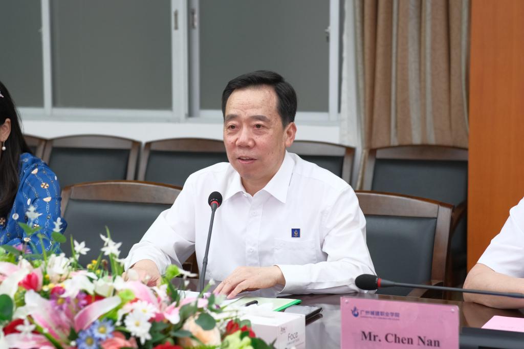 沈載淵一行在座談會之前參觀了校園和現(xiàn)代建筑技術(shù)職業(yè)技能公共實訓(xùn)中心。