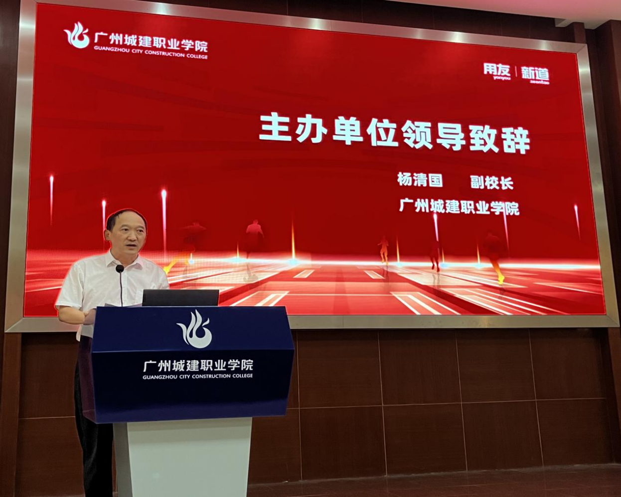 開幕式上,我校副校長楊清國和新道科技股份有限公司廣東分公司總經(jīng)理黃堪敬分別致歡迎詞,對(duì)大家能夠齊聚學(xué)校開展研討表示歡迎和感謝。