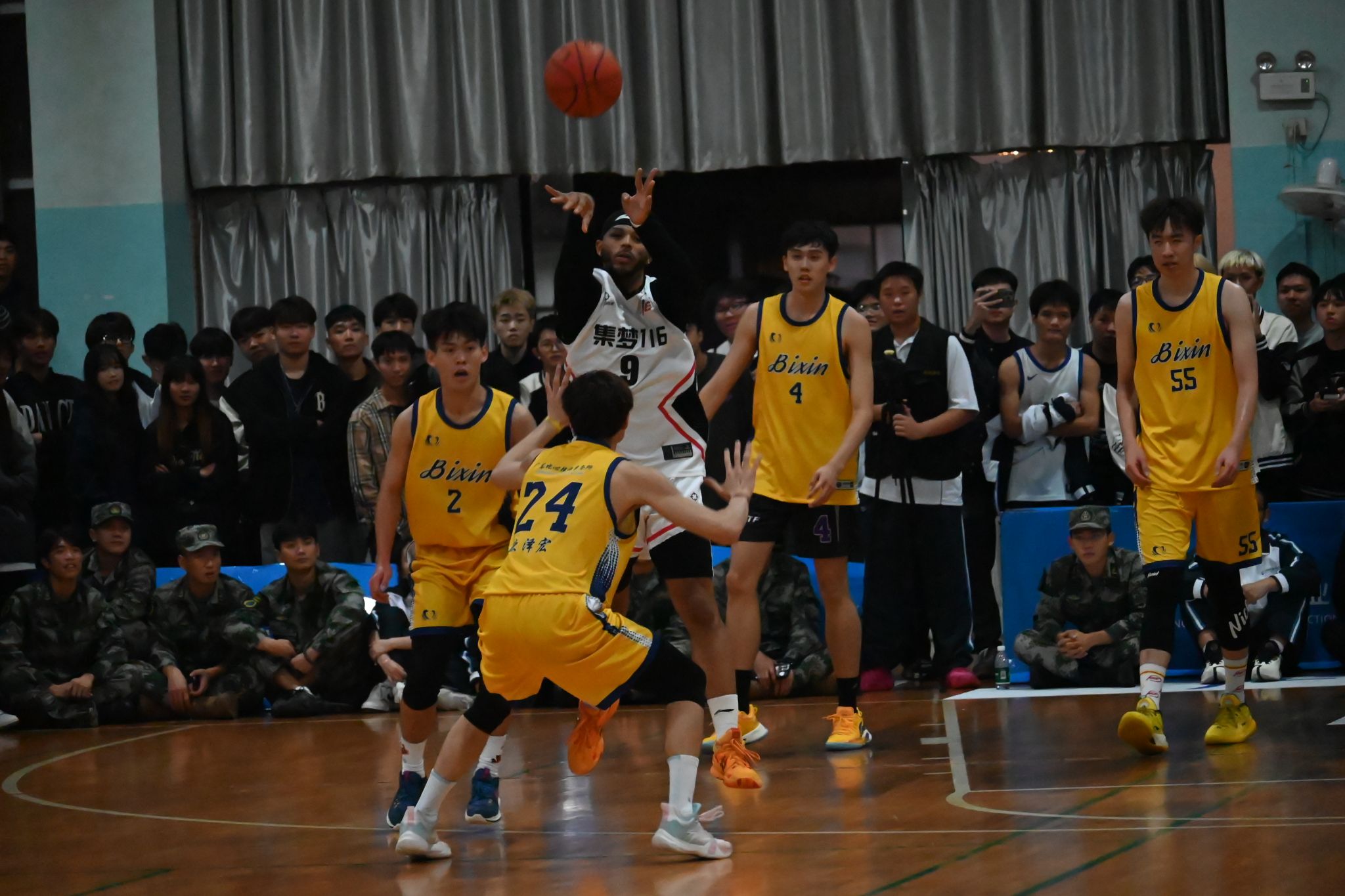 在5V5比賽中,觀眾期待的目光與熱情的吶喊聲使得雙方對(duì)決愈發(fā)熱烈,集夢116隊(duì)員憑借著出色的個(gè)人能力頻頻得分,場面優(yōu)勢進(jìn)一步擴(kuò)大,但城建校隊(duì)也不甘落后,不斷利用靈活的跑位及速度優(yōu)勢沖擊對(duì)手的內(nèi)線,快攻、妙傳,更是令比賽精彩紛呈,將整個(gè)賽場點(diǎn)燃,現(xiàn)場激情澎湃,掌聲雷動(dòng),氣氛達(dá)到了高潮。