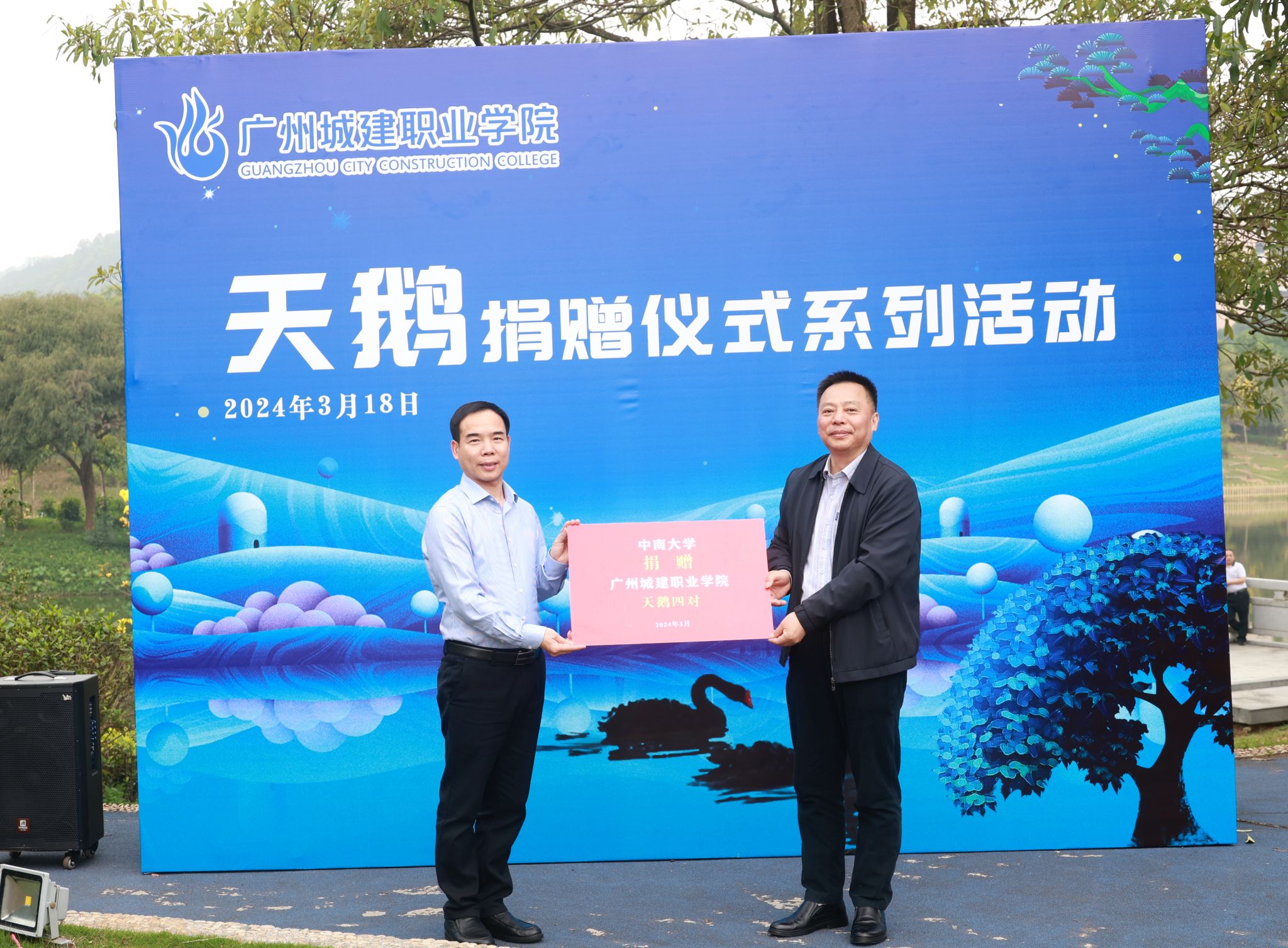在儀式上,楊清國代表學校感謝中南大學、福建水利電力職業(yè)技術(shù)學院的捐贈,他表示,天鵝代表的“鴻鵠有志”與城建的“志存高遠、敢為人先”精神相契合,既能讓學校師生感受自然之美,更能激勵大家樹立遠大志向,奮發(fā)向上,實現(xiàn)人生價值。此次捐贈承載著三所學校深厚的情誼,希望以天鵝情緣、種友誼樹為契機,讓三校在生態(tài)校園、人文校園建設(shè)方面碰撞出更多新思路、新想法,也期待在中南大學、福建水利電力職業(yè)技術(shù)學院兩所知名學校的幫助下,學校能獲得更好、更快的發(fā)展。