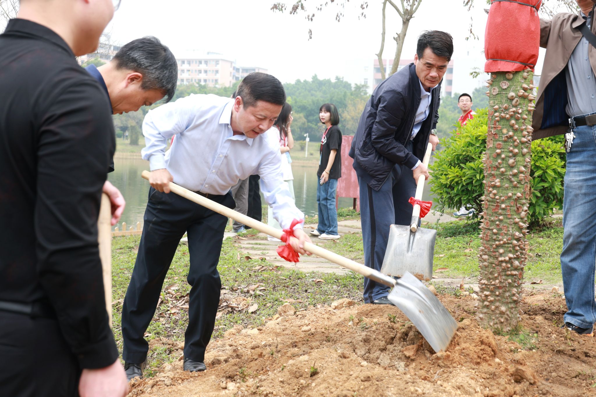 溫馨的贈送儀式結(jié)束后,三校領(lǐng)導共同在荔香湖畔種下友誼樹,并與師生一起參加了植樹節(jié)活動。大家分工協(xié)作、扶苗培土、提水澆灌,各個環(huán)節(jié)井然有序,現(xiàn)場氣氛熱烈。