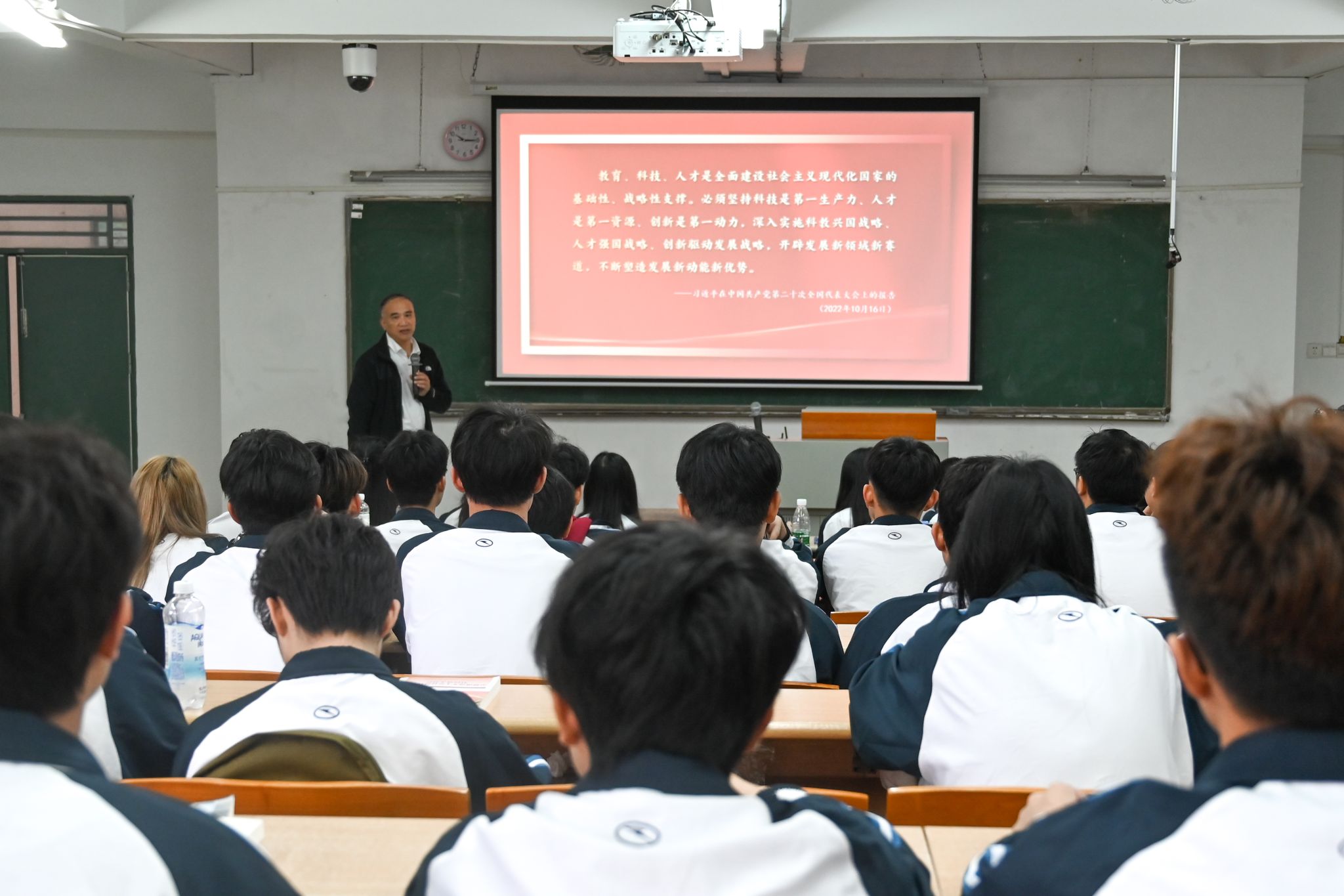 當(dāng)前我國(guó)已進(jìn)入全面建設(shè)社會(huì)主義現(xiàn)代化國(guó)家新征程,比以往任何時(shí)候都更加需要加快推進(jìn)教育現(xiàn)代化,需要大幅提升科技整體水平,需要建設(shè)世界重要人才中心和創(chuàng)新高地。為此,蔣新華特別講到以下幾點(diǎn):第一,教育興則國(guó)家興,教育強(qiáng)則國(guó)家強(qiáng),只有把教育搞上去,才能培養(yǎng)高素質(zhì)人才,才能從根本上增強(qiáng)國(guó)家的綜合國(guó)力;第二,加快建設(shè)科技強(qiáng)國(guó),必須堅(jiān)持走中國(guó)特色自主創(chuàng)新道路,加快實(shí)現(xiàn)高水平科技自立自強(qiáng),服務(wù)高質(zhì)量發(fā)展;第三,國(guó)家的發(fā)展需要靠人才,民族振興需要靠人才;在談到職業(yè)教育在科教興國(guó)中所發(fā)揮的作用時(shí),他以廣州城建職業(yè)學(xué)院為例,向?qū)W生們介紹了我校的專業(yè)結(jié)構(gòu)布局、人才培養(yǎng)模式、師資隊(duì)伍建設(shè)、產(chǎn)教融合成績(jī)等內(nèi)容,并結(jié)合大量?jī)?yōu)秀城建學(xué)子的生動(dòng)案例引導(dǎo)學(xué)生“新時(shí)代職業(yè)教育青年前途廣闊、大有可為?!?/p>