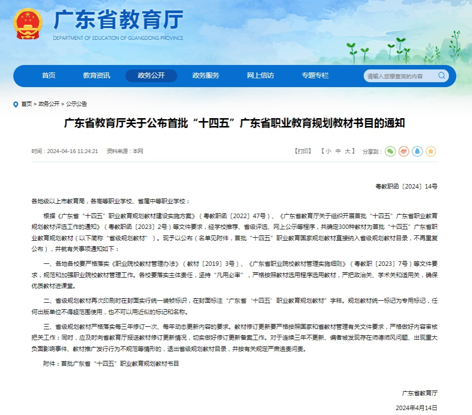 我校12種教材入選首批“十四五”廣東省職業(yè)教育規(guī)劃教材