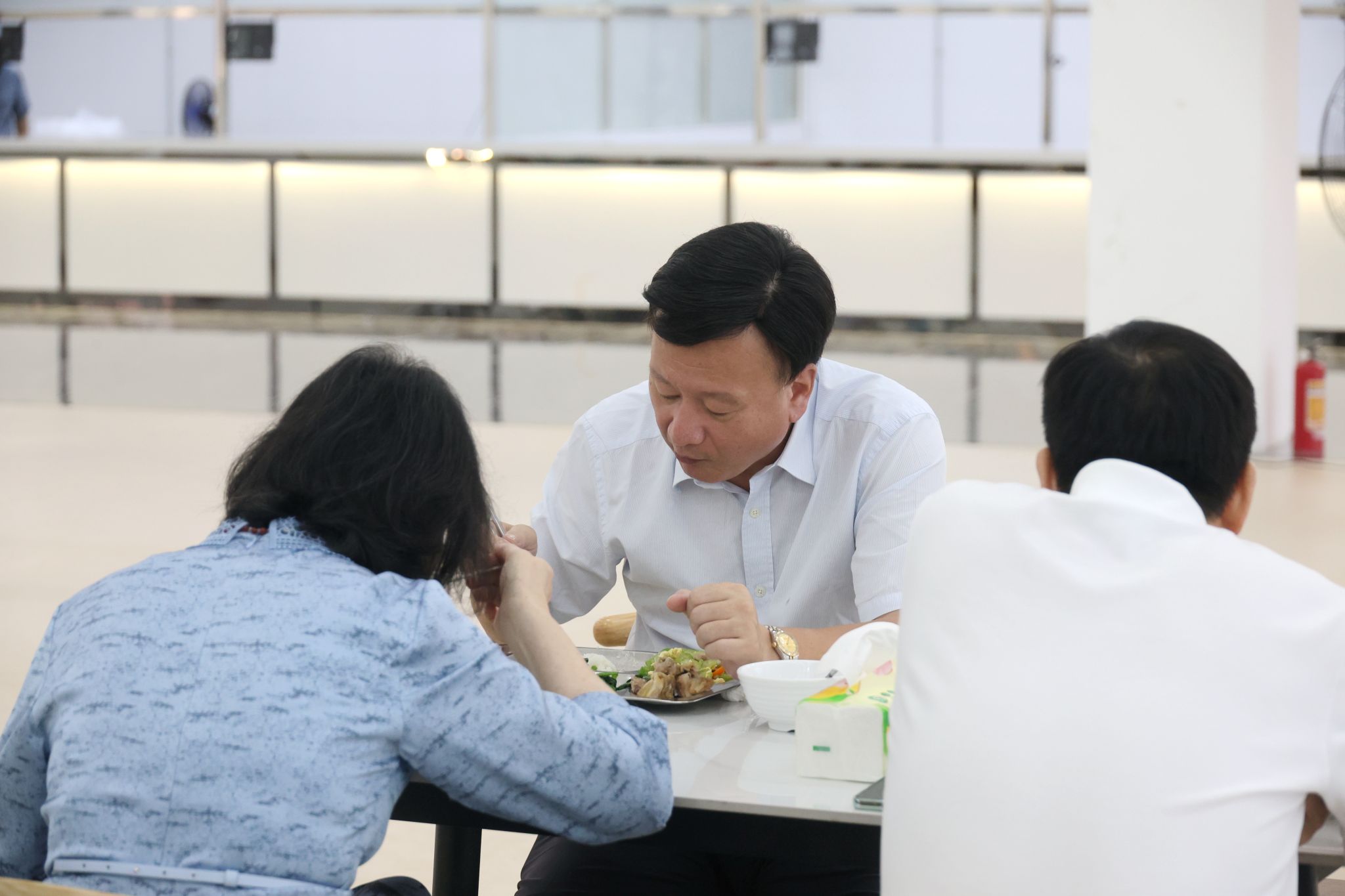 會(huì)前,蔣新華等校領(lǐng)導(dǎo)帶隊(duì)查看了新校區(qū)教學(xué)設(shè)施、圖書(shū)館、實(shí)訓(xùn)室、多媒體課室、學(xué)生食堂等現(xiàn)場(chǎng)情況。會(huì)后,全體與會(huì)人員一起走進(jìn)新校區(qū)食堂,在寬敞明亮的餐廳內(nèi)試吃了新校區(qū)食堂第一餐。