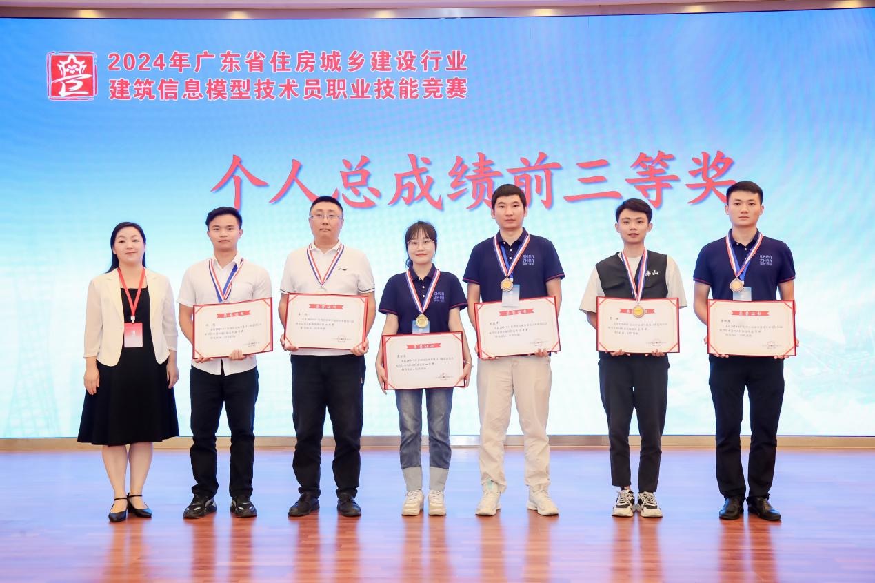 競賽包括理論知識考試環(huán)節(jié)與實操技能考核環(huán)節(jié),其中,理論知識考試采用統(tǒng)一試卷、閉卷方式進(jìn)行現(xiàn)場考核;實操技能考核以選手在現(xiàn)場使用計算機進(jìn)行模型數(shù)據(jù)構(gòu)建的方式進(jìn)行,主要從項目準(zhǔn)備、模型創(chuàng)建與編輯、模型更新與協(xié)同、專業(yè)應(yīng)用、成果輸出等方面考核實操能力。通過設(shè)計多種題型,全面檢驗了選手們對專業(yè)知識的掌握程度和分析解決問題的能力,不僅考察了選手們的實踐能力和應(yīng)變能力,更體現(xiàn)了他們的專業(yè)素養(yǎng)和團(tuán)隊協(xié)作精神。經(jīng)過緊張激烈的角逐,比賽最終評選出了個人獎與團(tuán)體獎一二三等獎。其中,深圳市住房和建設(shè)局一隊雷金連獲得本次競賽個人總成績一等獎,深圳市住房和建設(shè)局一隊榮獲團(tuán)體一等獎。