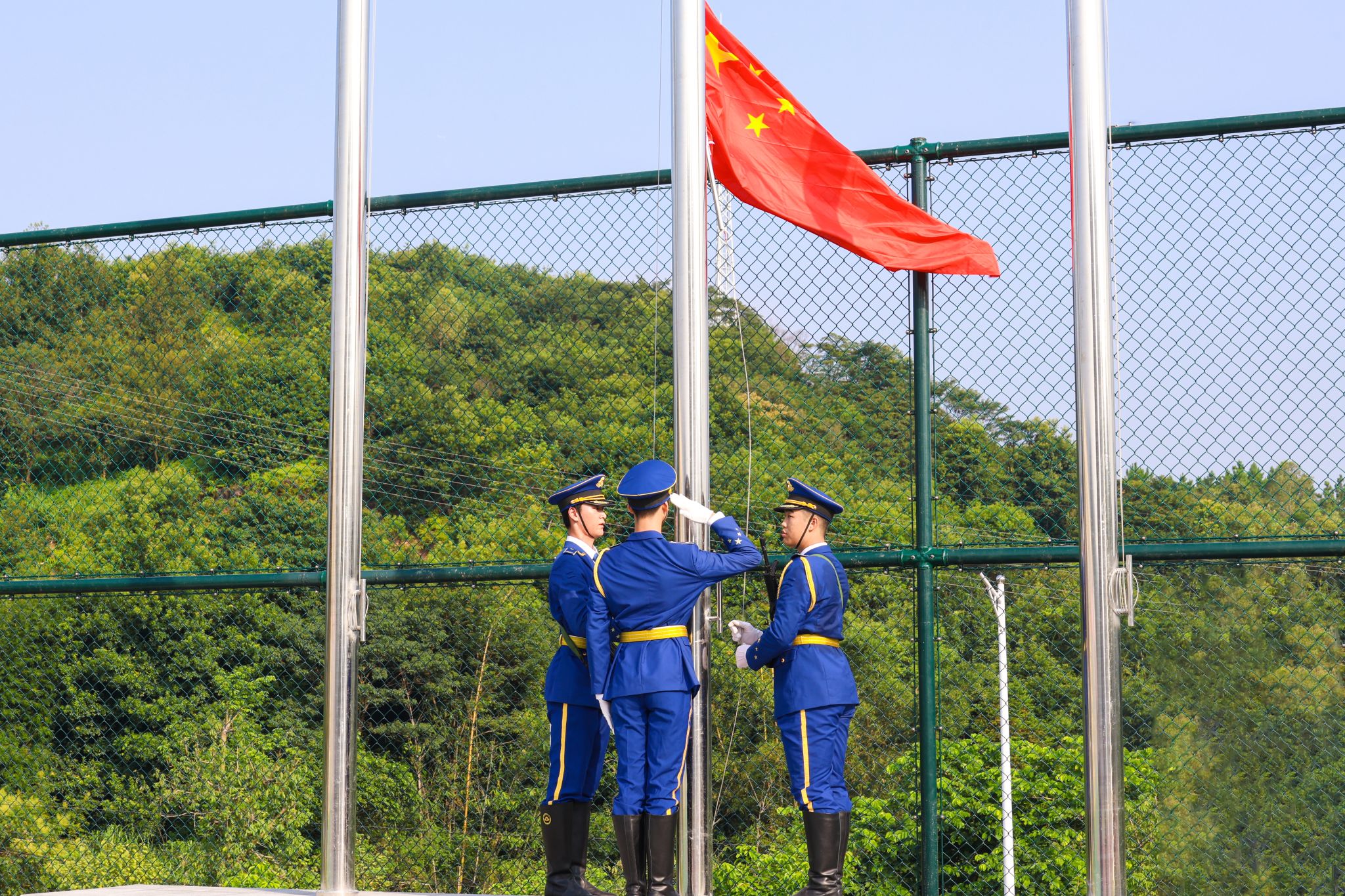 國旗護(hù)衛(wèi)隊(duì)成員邁著鏗鏘有力的步伐,護(hù)送著鮮艷的五星紅旗走向升旗臺(tái)。隨著莊嚴(yán)的國歌聲響起,五星紅旗在晨光中緩緩升起,迎風(fēng)飄揚(yáng),開學(xué)典禮拉開帷幕。