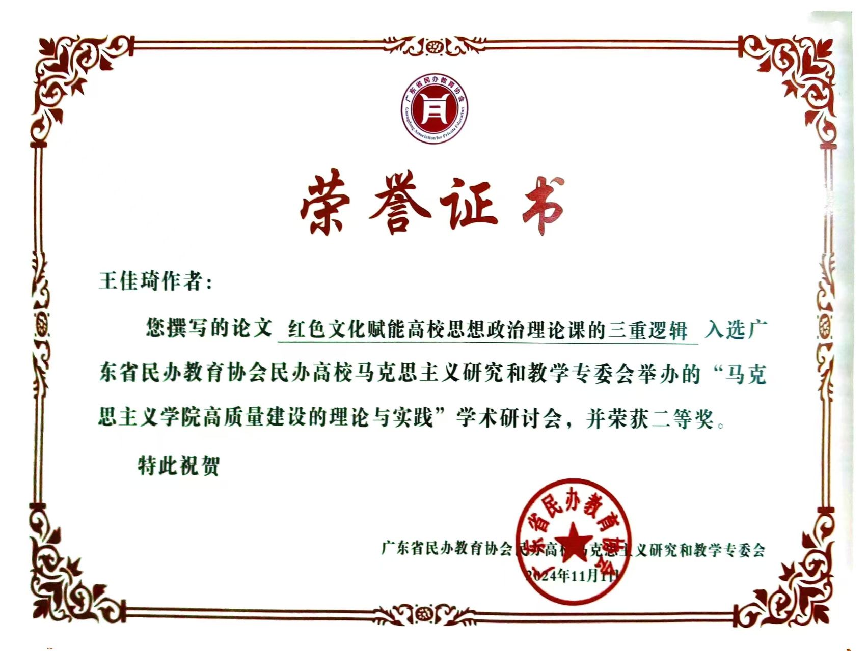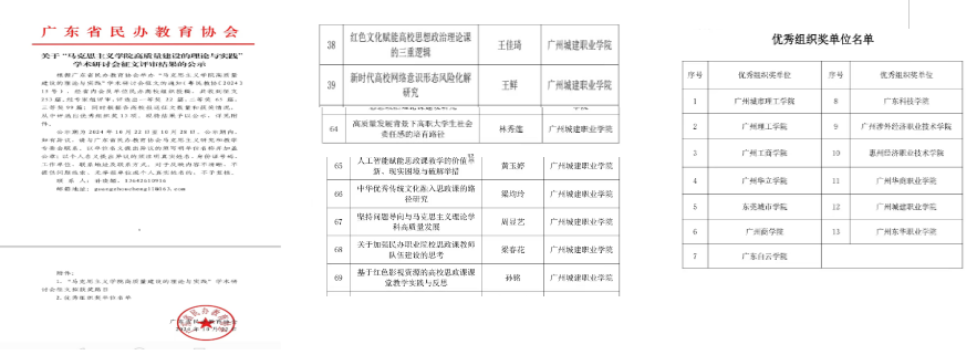 11月1日,由廣東省民辦教育協(xié)會指導,廣東省民辦教育協(xié)會馬克思主義研究和教學專委會主辦,廣州理工學院馬克思主義學院、廣州城市理工學院馬克思主義學院承辦的“馬克思主義學院高質(zhì)量建設(shè)的理論與實踐”學術(shù)研討會在廣州理工學院舉行。我校馬克思主義學院王鮮、王佳琦老師榮獲二等獎,林秀蓮、黃玉婷、梁均玲、周顯藝、梁春花、孫銘等六位老師榮獲三等獎,我校榮獲“優(yōu)秀組織獎”。我校馬克思主義學院黨總支書記宋霞出席本次研討會并作為獲獎學校代表上臺領(lǐng)獎。