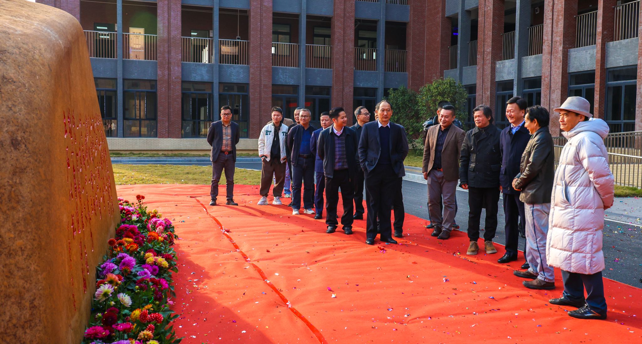 當天下午,在學校后勤綜合樓前廣場舉行了校友會捐贈儀式。學校執(zhí)行董事、校管委會主任張亞斌,黨委書記黃學茭,執(zhí)行校長李國年等公司和學校領(lǐng)導(dǎo)、校友代表共同為“奮進”景觀石進行揭幕。