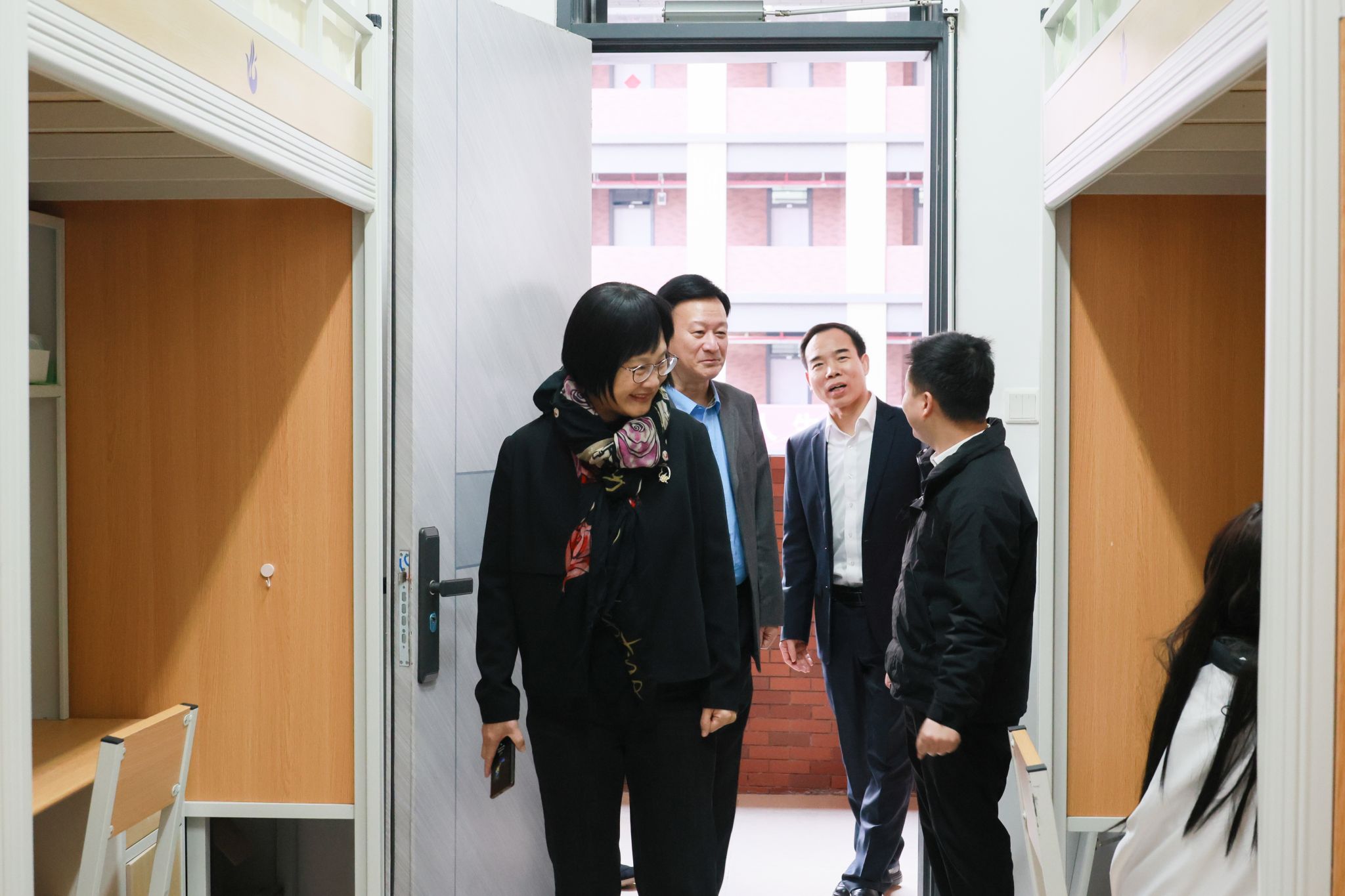會前,吳艷玲一行在張亞斌、黃學茭、李國年等陪同下,現(xiàn)場走訪調(diào)研了實訓室、學生心理咨詢中心、學生宿舍、教師公寓、食堂等地,深入考察了學校新校區(qū)校園環(huán)境、教學條件和師生生活條件等情況。學校正式入駐新校區(qū)半年以來,辦學條件和校園環(huán)境不斷得到改善、優(yōu)化,為師生創(chuàng)造了良好的學習、生活、工作環(huán)境。