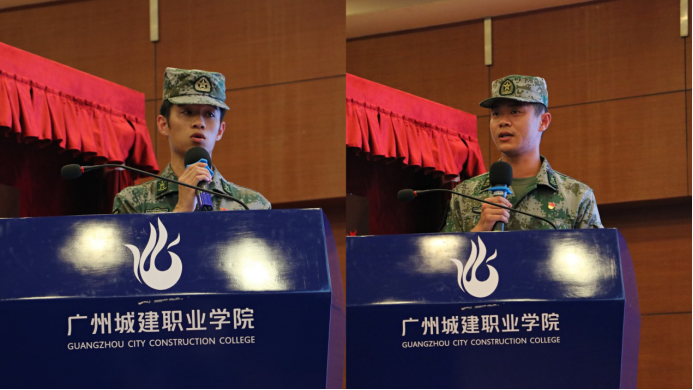一區(qū)區(qū)隊長陳俊均、二區(qū)區(qū)隊長葉家宇作為隊員代表上臺發(fā)言,代表全體隊員承諾:在日后的訓練中,隊員們將會服從命令,肯于吃苦,團結(jié)友愛,文明禮貌,時刻以軍人的標準嚴格要求自己。