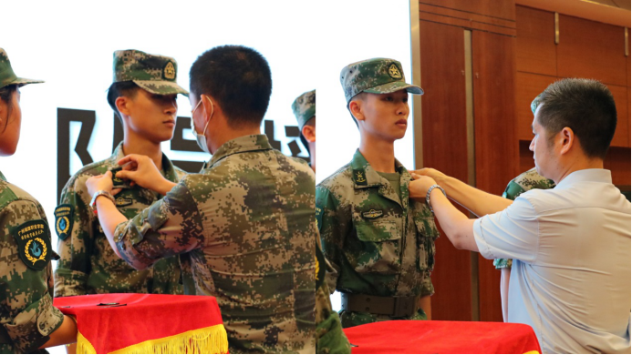 隨后,涂勇等領(lǐng)導(dǎo)為隊員授銜。