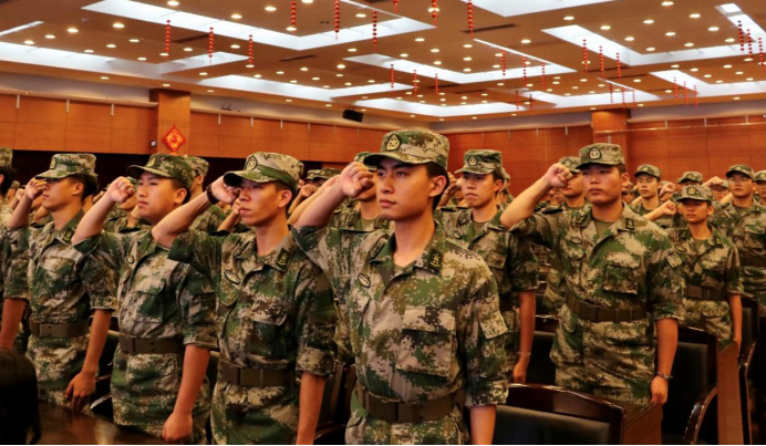 授銜完畢,全體隊員緊握右拳莊嚴宣誓,承諾將會服從命令,聽從指揮,嚴守紀律,刻苦訓練,勤奮學習,樂于奉獻,為國防教育事業(yè)做出應(yīng)有的貢獻。