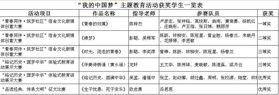附:“我的中國夢”主題教育活動獲獎學生一覽表