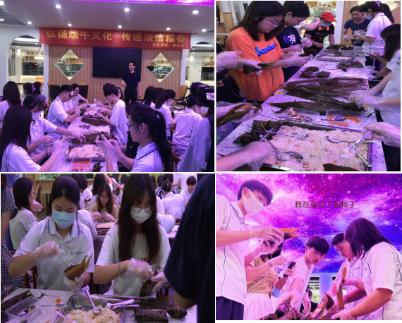 為讓大家學(xué)會(huì)包粽子,學(xué)生處請來了飯?zhí)冒⒁态F(xiàn)場教學(xué)。同學(xué)們領(lǐng)悟力強(qiáng),上手很快,折粽葉、舀米、壓實(shí)、扎繩,動(dòng)作麻利,短時(shí)間就掌握了包粽子的技巧,不一會(huì)兒就包出了一小堆粽子,技術(shù)嫻熟的學(xué)生甚至比拼起手藝,活動(dòng)現(xiàn)場其樂融融,一片歡樂和諧的節(jié)日氛圍。熱氣騰騰的粽子上桌后,同學(xué)們圍坐在一起享受自己的勞動(dòng)果實(shí),并分享交流學(xué)習(xí)端午歷史知識。