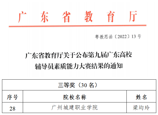 6月6日,第九屆廣東高校輔導員素質(zhì)能力大賽結(jié)果揭曉,信息工程學院輔導員梁均玲在本次大賽中榮獲三等獎。
