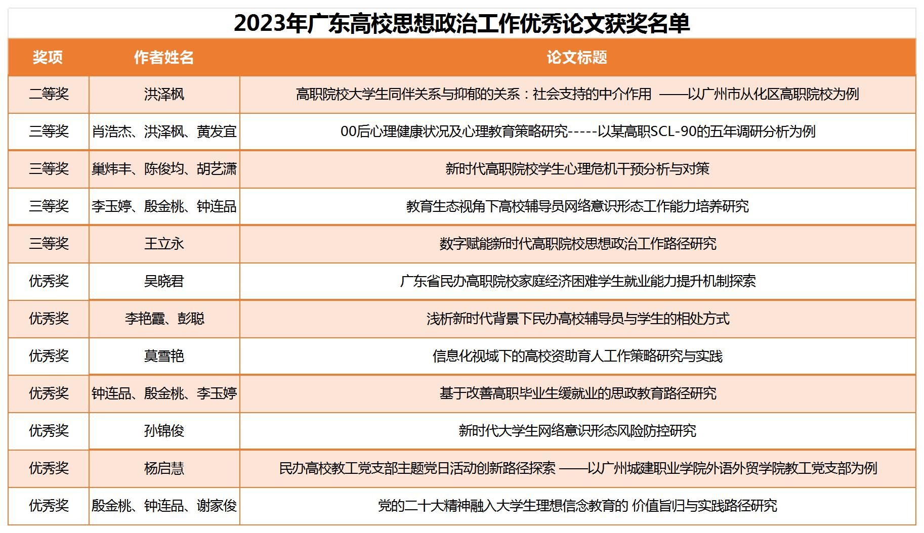 3月26日,由廣東省高校思想政治工作隊伍培訓(xùn)研修中心(華南師范大學(xué))組織開展的2023年廣東高校思想政治工作優(yōu)秀論文、優(yōu)秀案例推選展示活動結(jié)果公布。我校共有12篇論文和9篇案例獲獎,其中,思想政治工作優(yōu)秀論文獲二等獎1項、三等獎4項、優(yōu)秀獎7項;學(xué)生工作案例獲二等獎3項、優(yōu)秀獎6項。