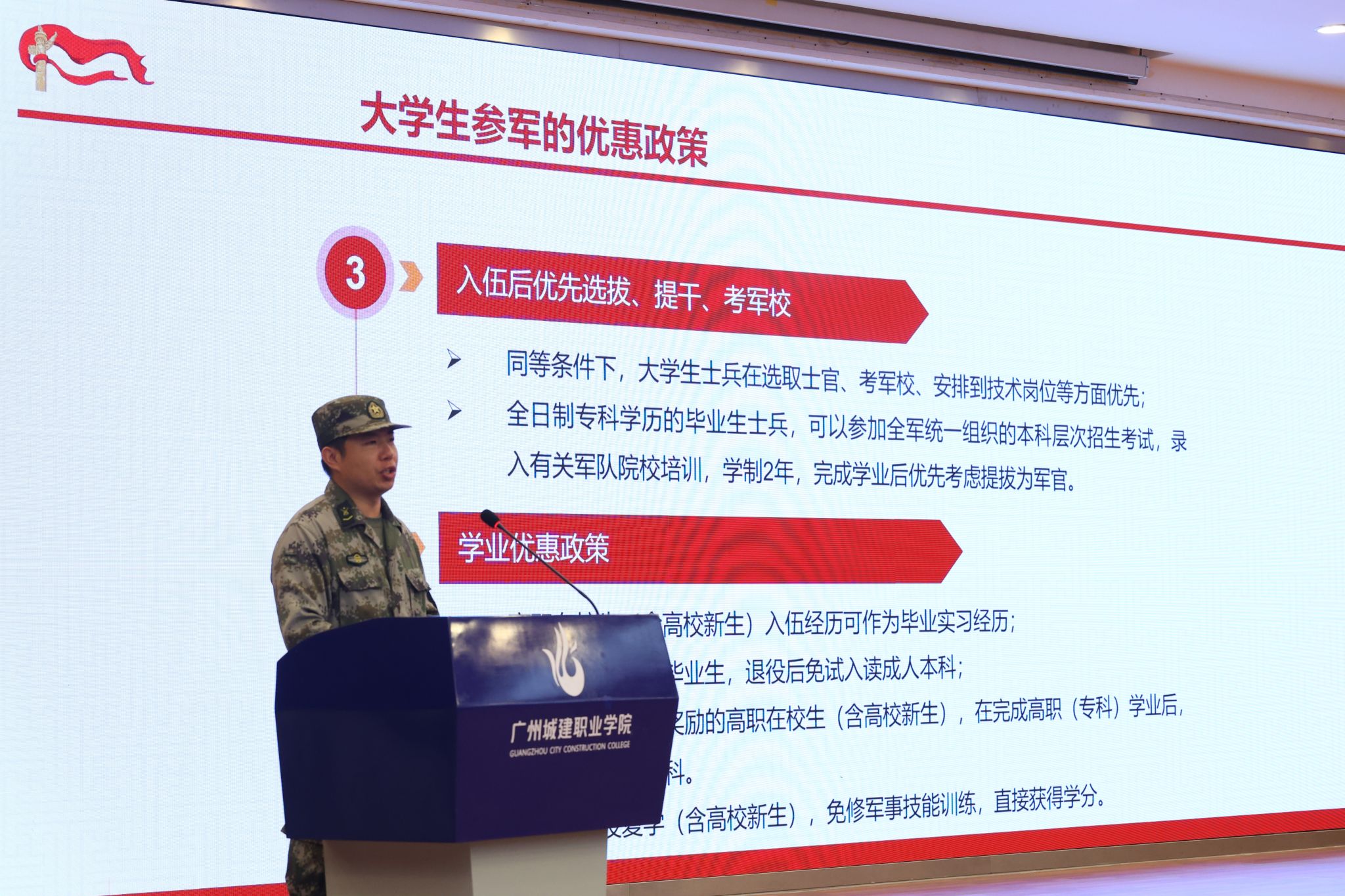 11月12日下午,我校在廣州校區(qū)人文藝術(shù)樓四樓報(bào)告廳舉行2024年征兵工作總結(jié)表彰暨2025年征兵宣傳動(dòng)員大會(huì)。黨委委員、校長助理孔練光,校團(tuán)委書記甄偉文,學(xué)生處副處長譚宇欣,各二級(jí)學(xué)院學(xué)工負(fù)責(zé)人,畢業(yè)班輔導(dǎo)員、學(xué)生代表參加本次大會(huì)。
